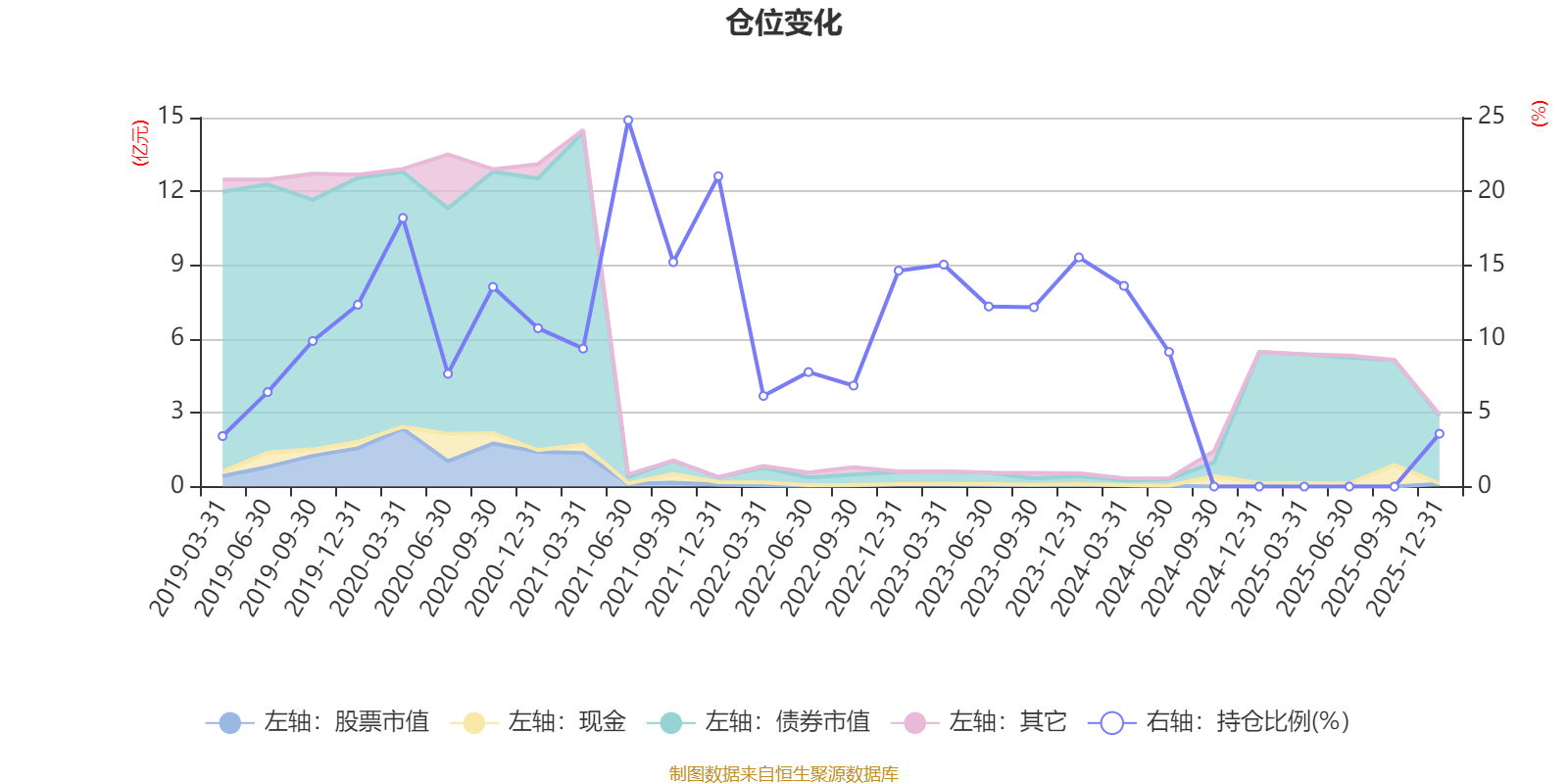 据定期报告数据统计,近三年平均股票仓位为6.77%,同类平均为20.63%。2021年上半年末基金达到24.83%的最高仓位,2019年一季度末最低,为3.42%。