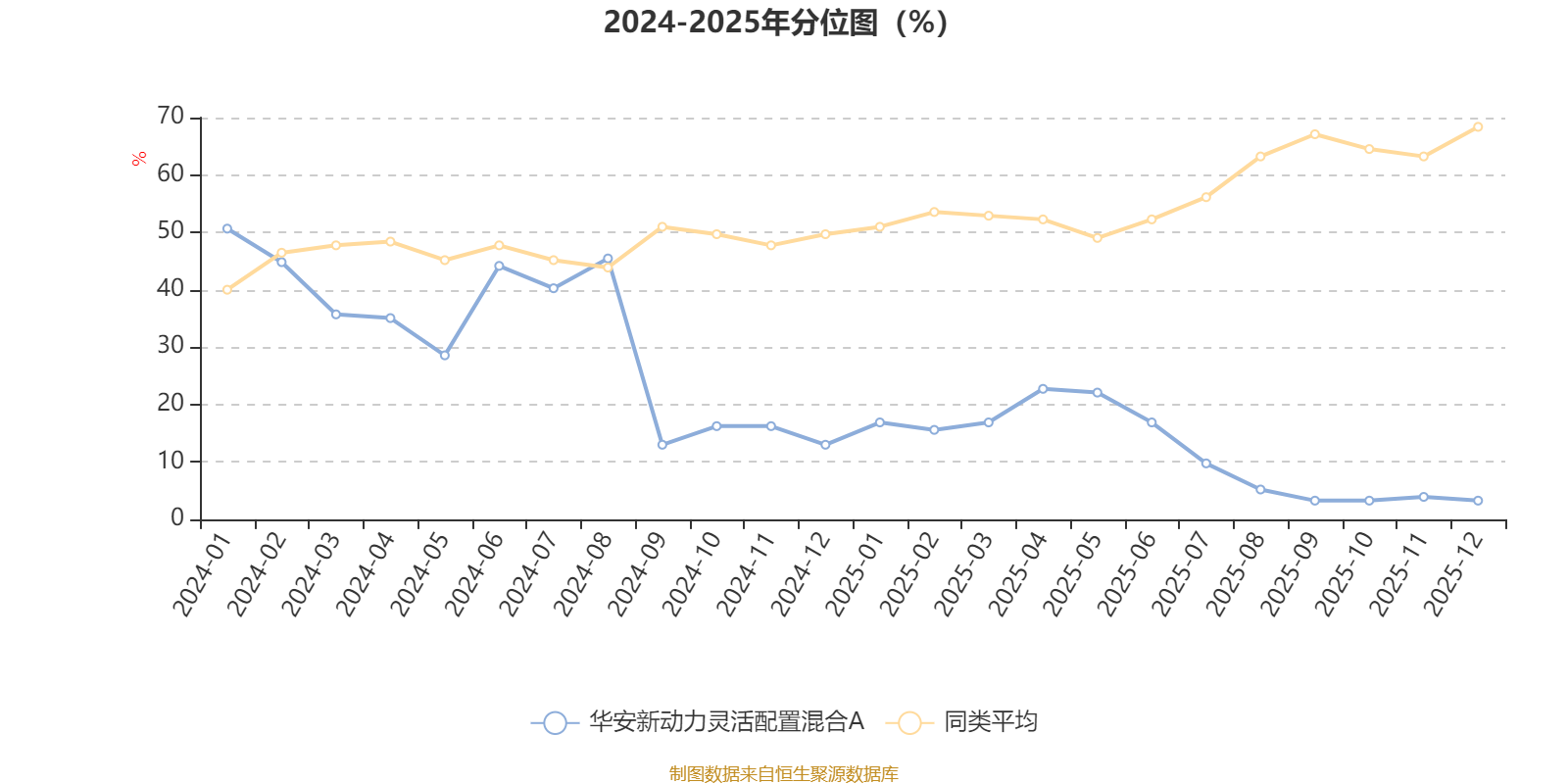 通过所选区间该基金净值增长率分位图,可以观察该基金与同类基金业绩比较情况。图为坐标原点到区间内某时点的净值增长率在同类基金中的分位数。