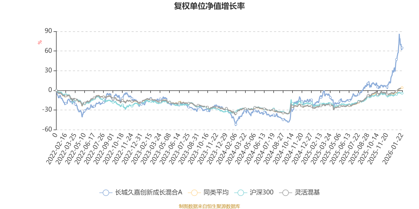 截至1月22日,长城久嘉创新成长混合A近三个月复权单位净值增长率为57.09%,位于同类可比基金1/1286;近半年复权单位净值增长率为74.55%,位于同类可比基金20/1286;近一年复权单位净值增长率为98.89%,位于同类可比基金18/1286;近三年复权单位净值增长率为97.00%,位于同类可比基金34/1286。
