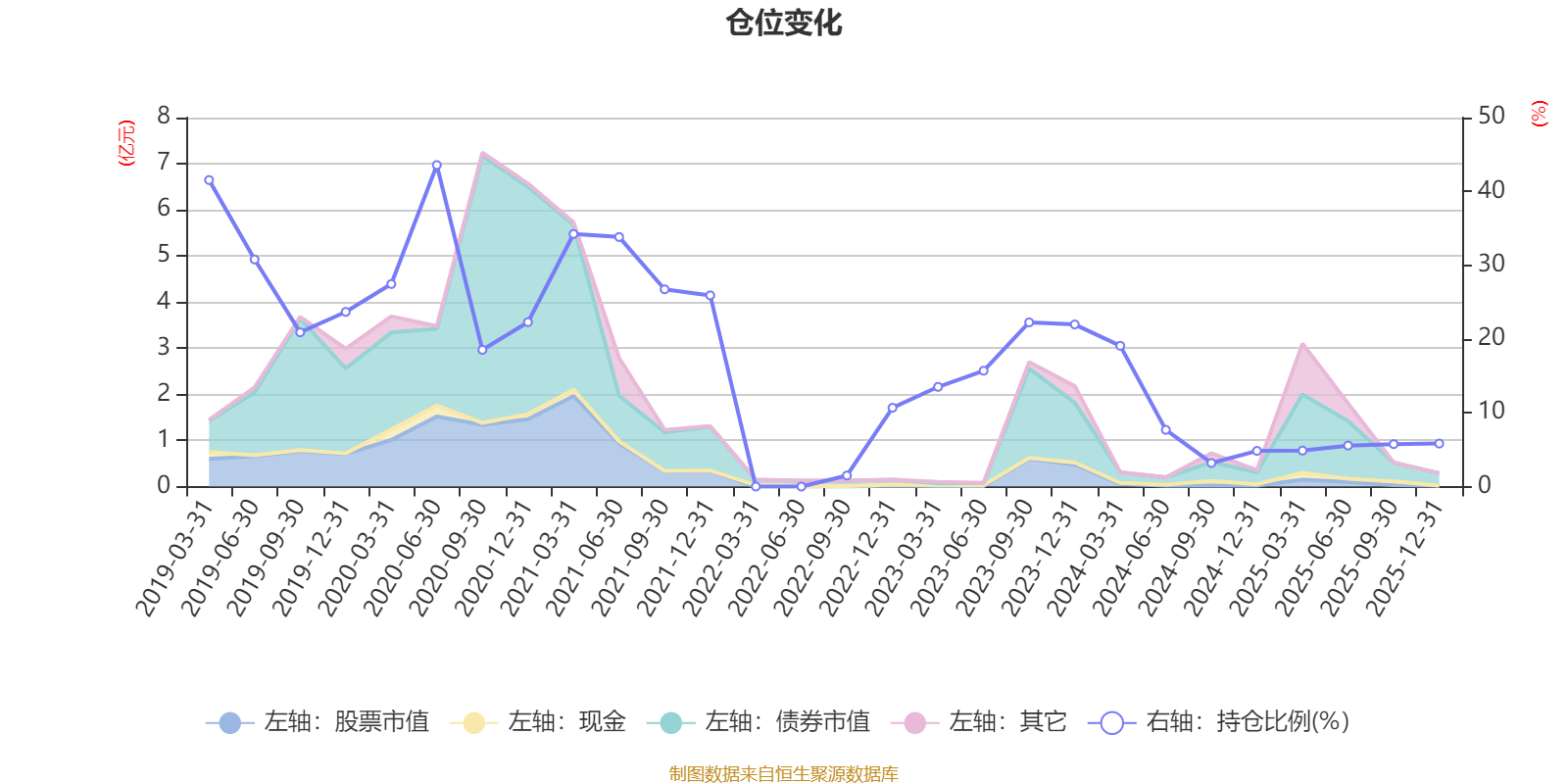 据定期报告数据统计,近三年平均股票仓位为10.85%,同类平均为72.57%。2020年上半年末基金达到43.57%的最高仓位,2022年三季度末最低,为1.5%。