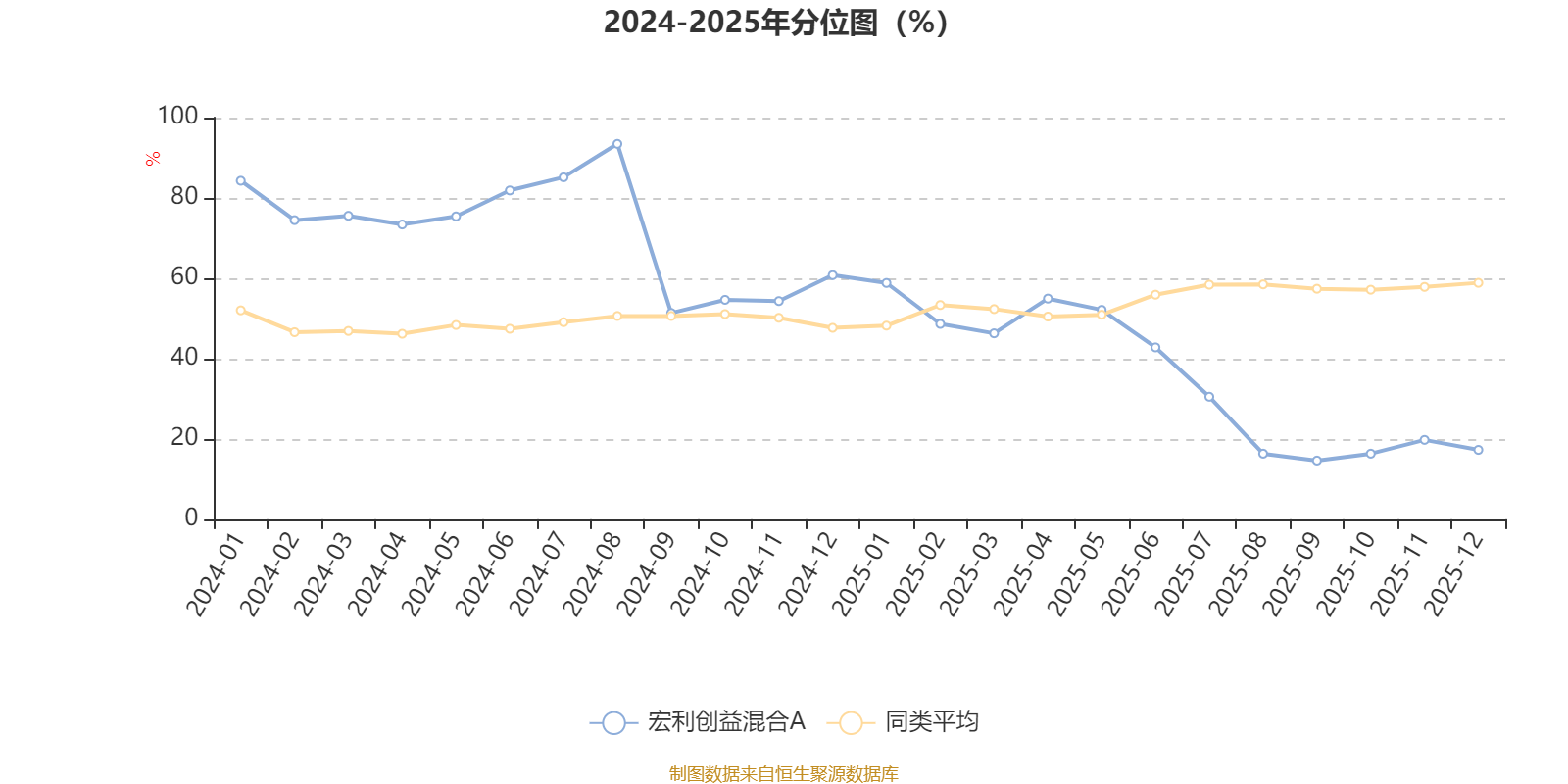通过所选区间该基金净值增长率分位图,可以观察该基金与同类基金业绩比较情况。图为坐标原点到区间内某时点的净值增长率在同类基金中的分位数。