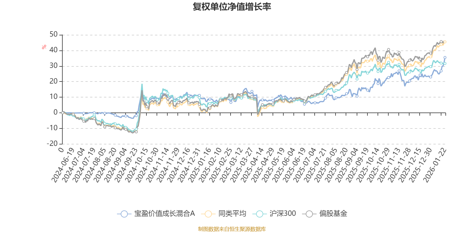 截至1月22日,宝盈价值成长混合A近三个月复权单位净值增长率为13.79%,位于同类可比基金199/689;近半年复权单位净值增长率为22.11%,位于同类可比基金377/689;近一年复权单位净值增长率为26.23%,位于同类可比基金488/673。