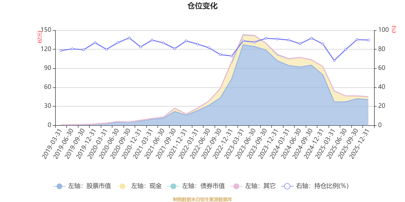 据定期报告数据统计,近三年平均股票仓位为86.65%,同类平均为72.57%。2020年三季度末基金达到92.03%的最高仓位,2025年一季度末最低,为68.26%。