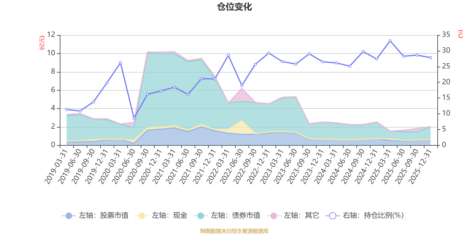 据定期报告数据统计,近三年平均股票仓位为27.86%,同类平均为19.2%。2025年一季度末基金达到33.17%的最高仓位,2020年上半年末最低,为8.63%。
