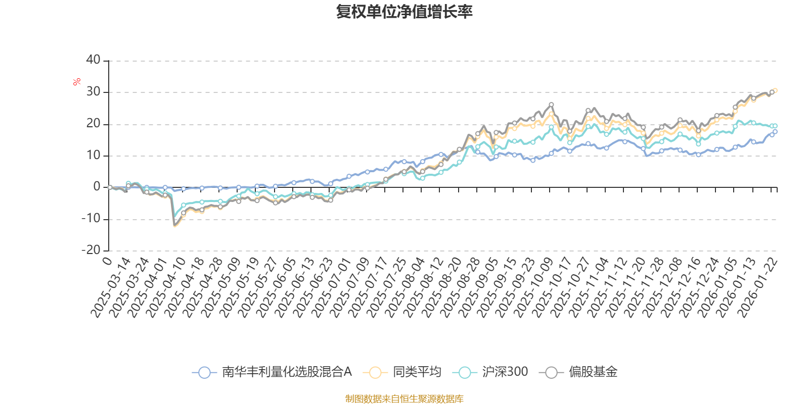 截至1月22日,南华丰利量化选股混合A近三个月复权单位净值增长率为4.03%,位于同类可比基金517/689;近半年复权单位净值增长率为8.63%,位于同类可比基金580/689。