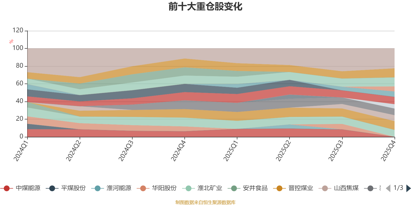 该基金持股集中度较高,且持股标的较为稳定,近2年前十大重仓股集中度长期超过60%。截至2025年四季度末,基金十大重仓股分别是山煤国际、潞安环能、晋控煤业、陕西煤业、淮北矿业、新集能源、山西焦煤、中国神华、内蒙华电、聚和材料。