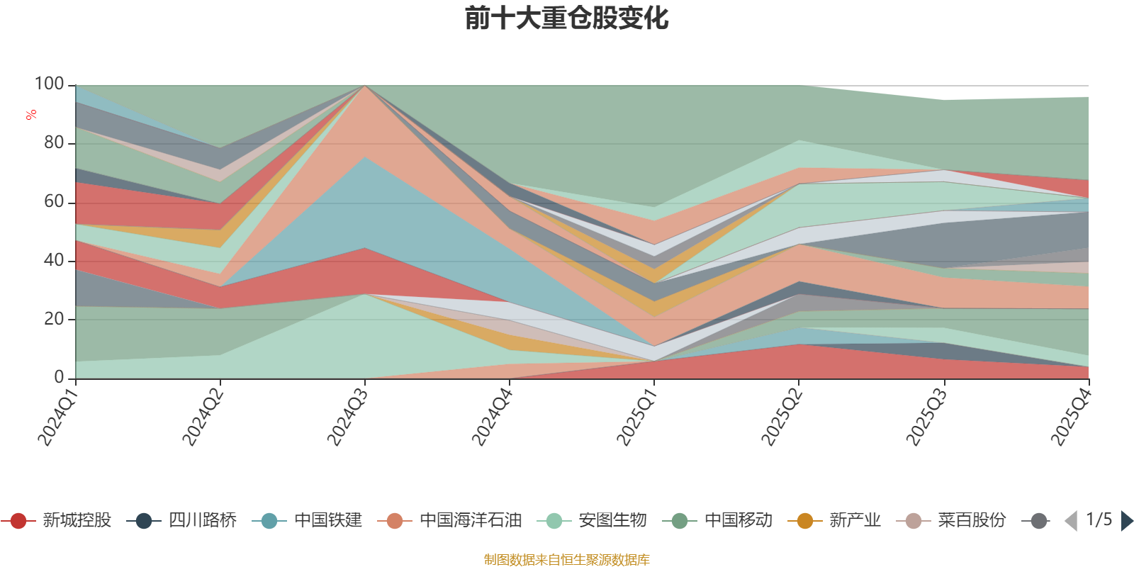 该基金持股集中度较高。截至2025年四季度末,基金十大重仓股分别是中国移动、顺丰控股、伊利股份、宝丰能源、春秋航空、荣盛石化、招商银行、华泰证券、新城控股、安图生物。