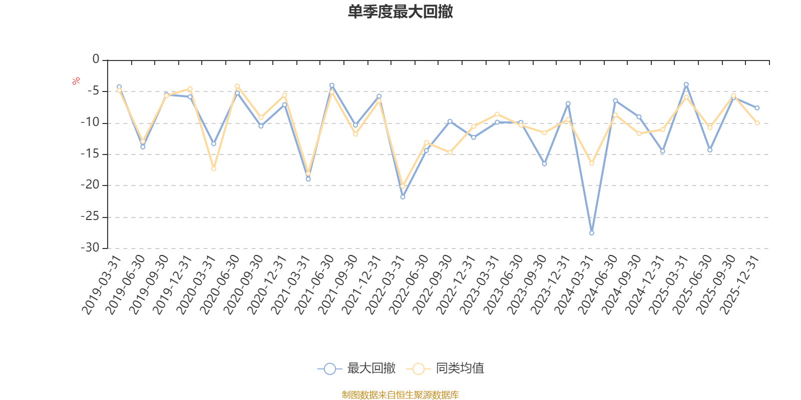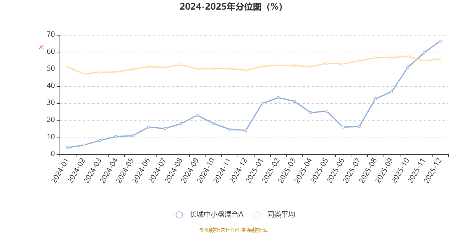通过所选区间该基金净值增长率分位图,可以观察该基金与同类基金业绩比较情况。图为坐标原点到区间内某时点的净值增长率在同类基金中的分位数。
