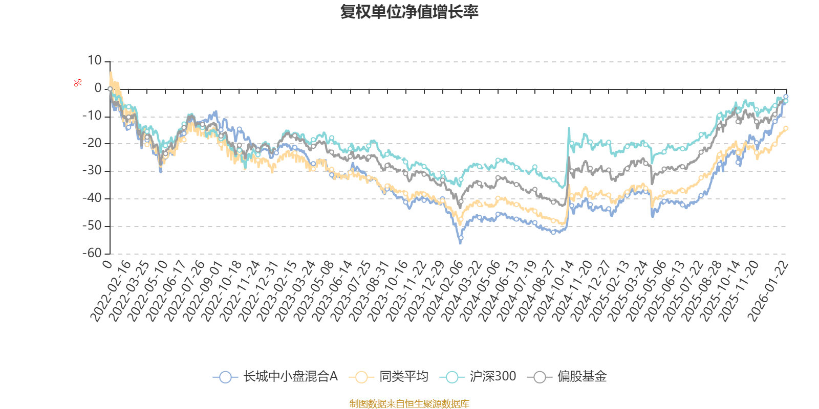 截至1月22日,长城中小盘混合A近三个月复权单位净值增长率为30.54%,位于同类可比基金7/621;近半年复权单位净值增长率为58.81%,位于同类可比基金35/621;近一年复权单位净值增长率为64.33%,位于同类可比基金80/613;近三年复权单位净值增长率为21.88%,位于同类可比基金236/535。