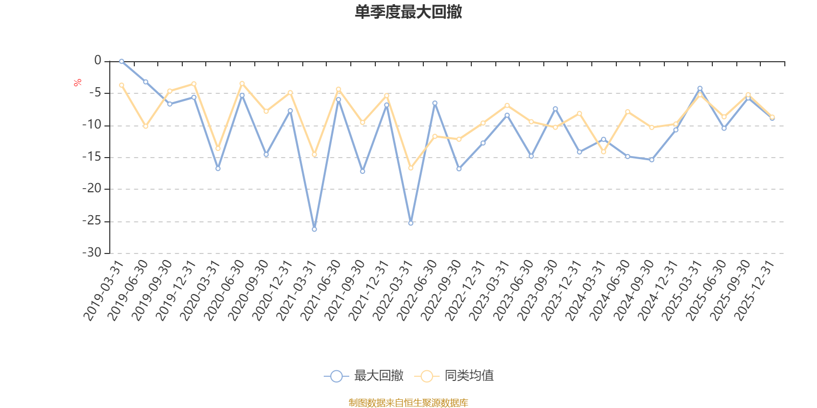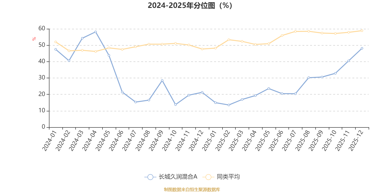 通过所选区间该基金净值增长率分位图,可以观察该基金与同类基金业绩比较情况。图为坐标原点到区间内某时点的净值增长率在同类基金中的分位数。