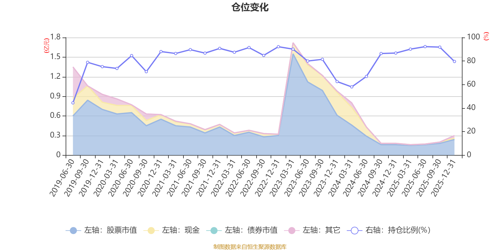 据定期报告数据统计,近三年平均股票仓位为80.5%,同类平均为72.57%。2025年上半年末基金达到92.25%的最高仓位,2019年上半年末最低,为44.45%。