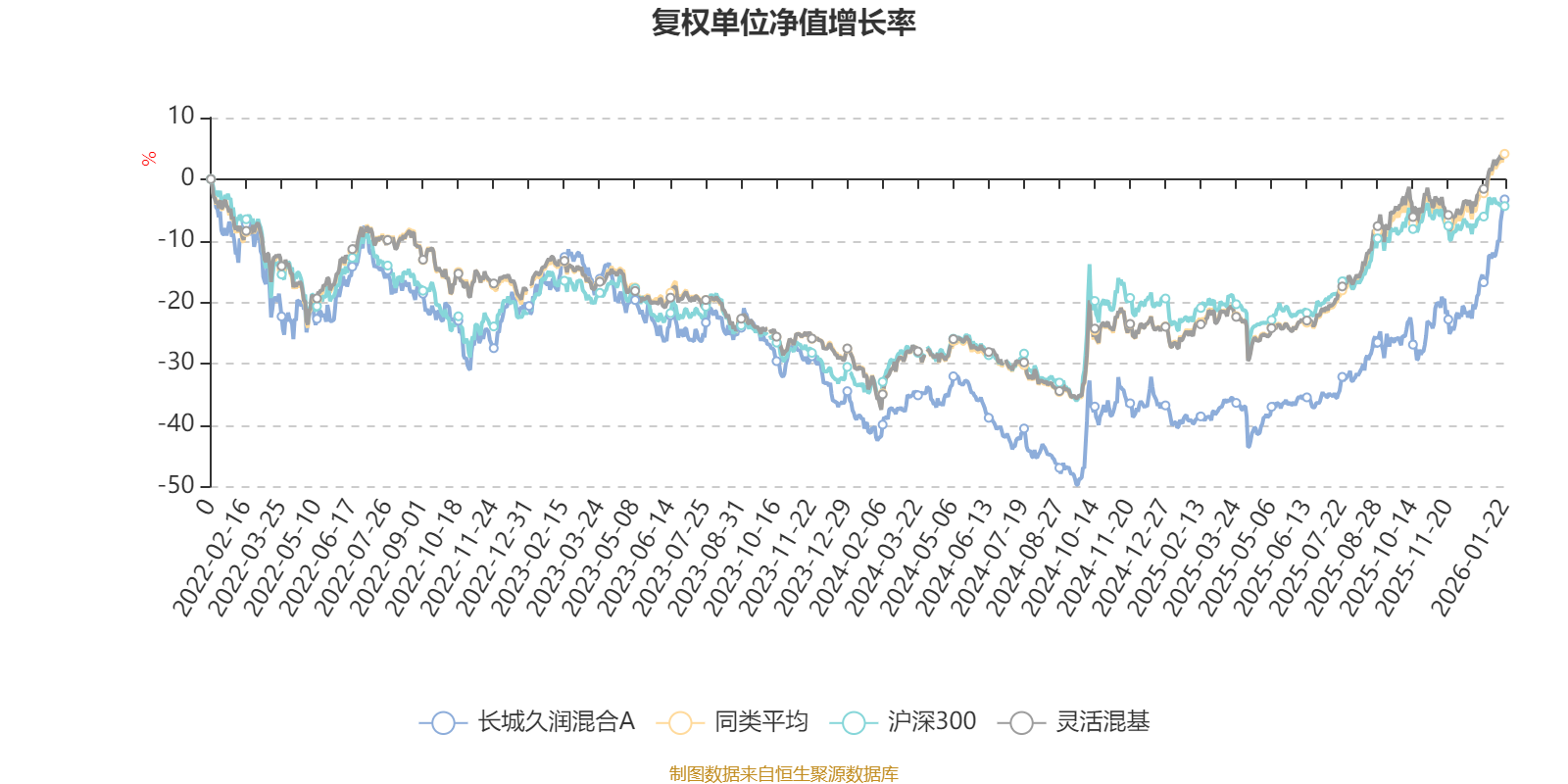 截至1月22日,长城久润混合A近三个月复权单位净值增长率为35.31%,位于同类可比基金13/1286;近半年复权单位净值增长率为42.54%,位于同类可比基金245/1286;近一年复权单位净值增长率为58.87%,位于同类可比基金222/1286;近三年复权单位净值增长率为16.85%,位于同类可比基金626/1286。