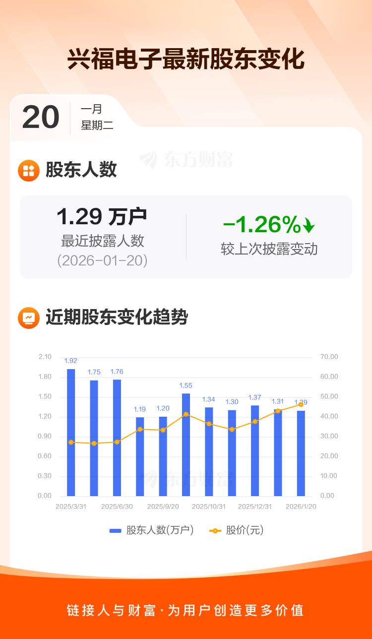 兴福电子:截至1月20日最新股东户数1.29万户,较上期减少1.26%