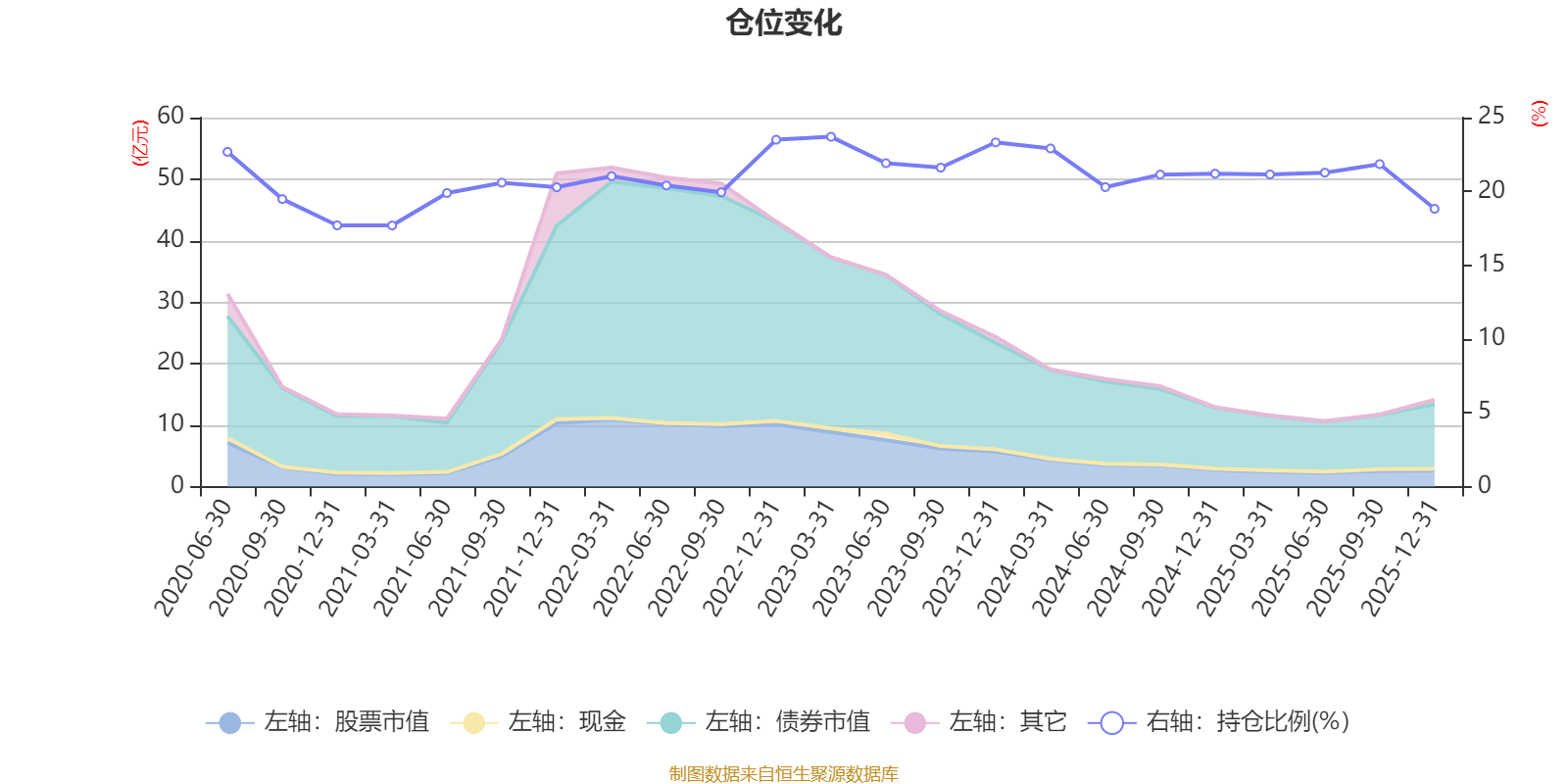 基金管理人在四季报中表示,权益投资方面,我们继续保持了对长期稳定增长的消费品、有竞争力的先进制造的底仓配置。组合整体较为均衡,加大了反内卷政策下可能加速出清过剩产能的一些中游制造业和受益于全球资本开支扩张的上游资源品的配置,同时也保持了一些稳定类高股息品种的配置。