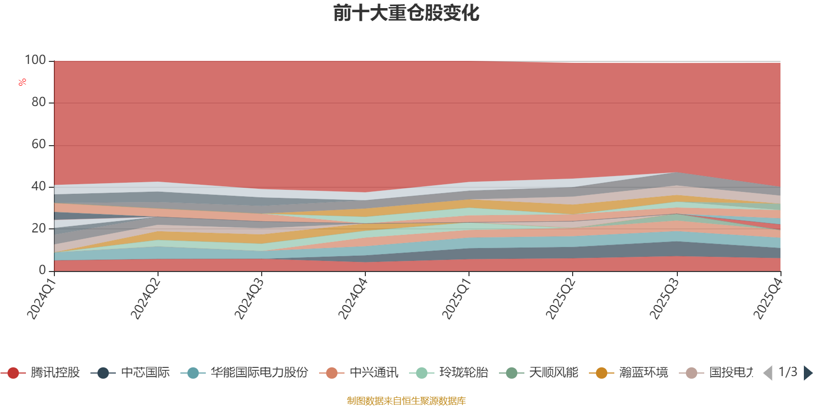 截至2025年四季度末,基金十大重仓股分别是腾讯控股、华能国际电力股份、中芯国际、宁德时代、海尔智家、时代电气、中兴通讯、天山铝业、顺丰控股、杰瑞股份。