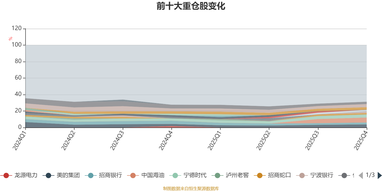 截至2025年四季度末,基金十大重仓股分别是中国海油、中国平安、美的集团、宁德时代、贵州茅台、海螺水泥、招商银行、晋控煤业、招商蛇口、宁波银行。