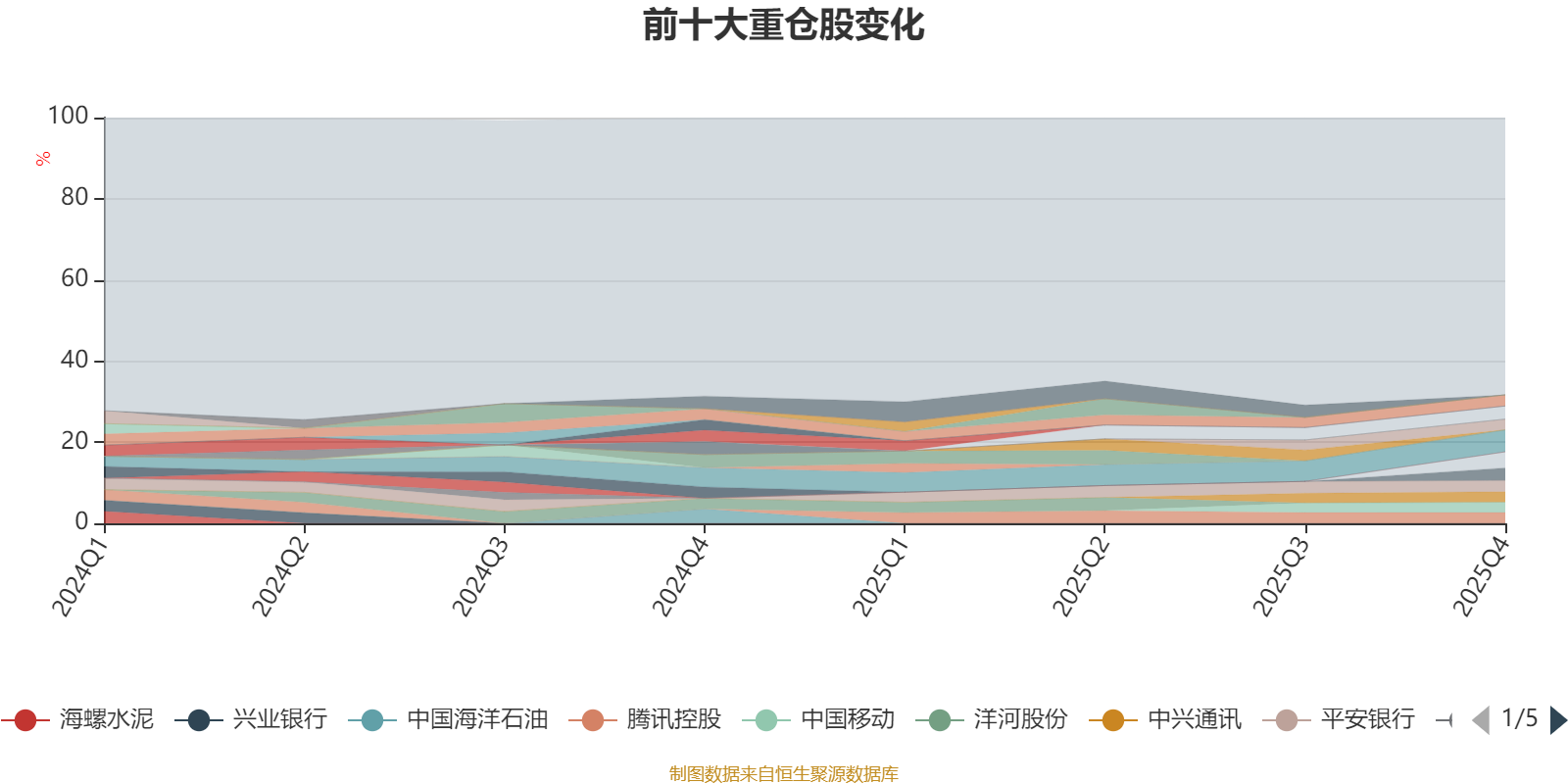 截至2025年四季度末,基金十大重仓股分别是贵州茅台、美团-W、海尔智家、迈瑞医疗、平安银行、美的集团、腾讯控股、海康威视、中兴通讯、中国移动。