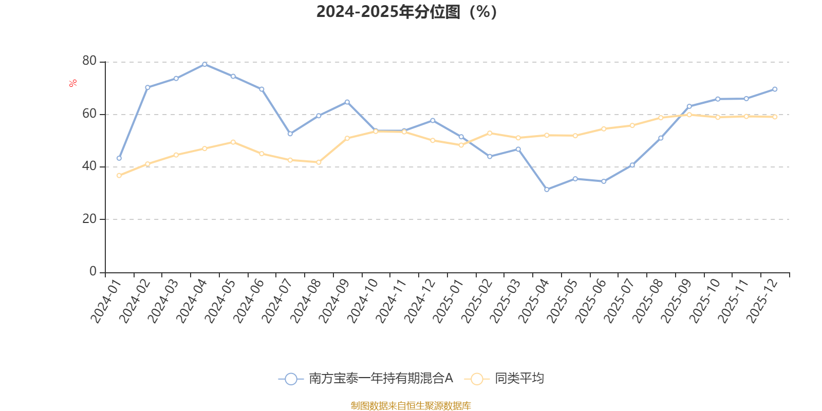 通过所选区间该基金净值增长率分位图,可以观察该基金与同类基金业绩比较情况。图为坐标原点到区间内某时点的净值增长率在同类基金中的分位数。