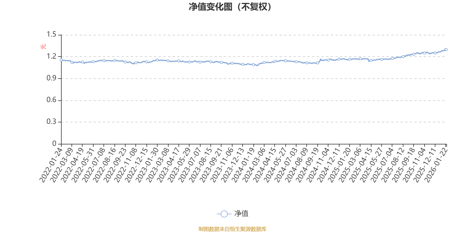 该基金属于偏债混合型基金。截至1月22日,单位净值为1.296元。基金经理是林乐峰和龙一鸣。