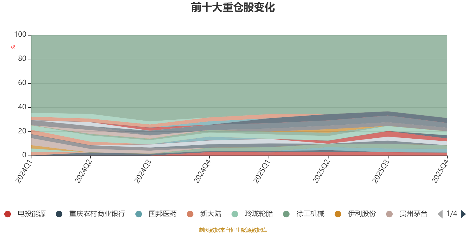 截至2025年四季度末,基金十大重仓股分别是新奥能源、宁德时代、美的集团、立讯精密、国邦医药、分众传媒、徐工机械、亚钾国际、电投能源、杰瑞股份。