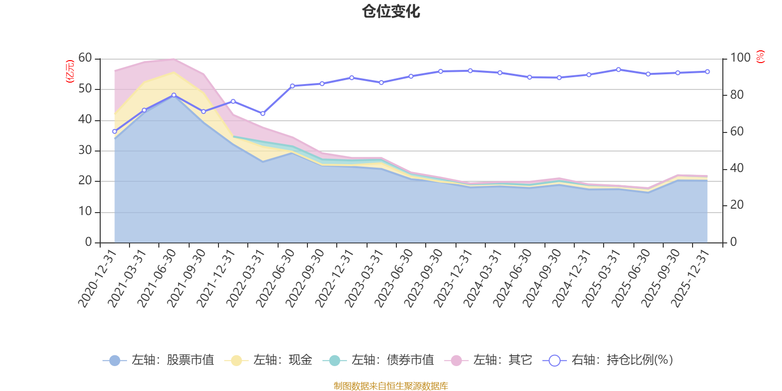 据定期报告数据统计,近三年平均股票仓位为91.52%,同类平均为87.64%。2025年一季度末基金达到94.08%的最高仓位,2020年末最低,为60.46%。
