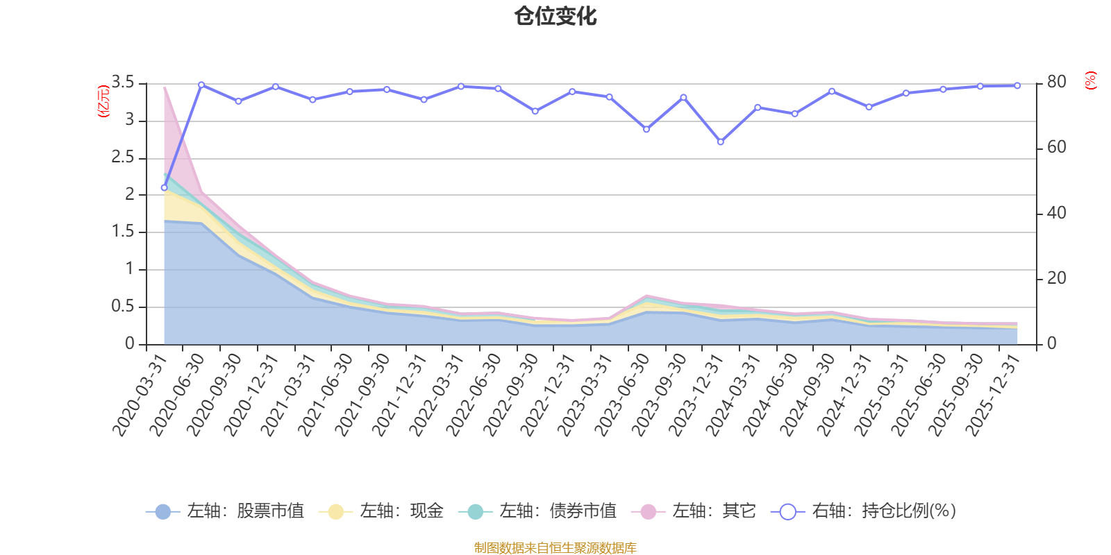 据定期报告数据统计,近三年平均股票仓位为73.87%,同类平均为67.52%。2020年上半年末基金达到79.51%的最高仓位,2020年一季度末最低,为48.02%。