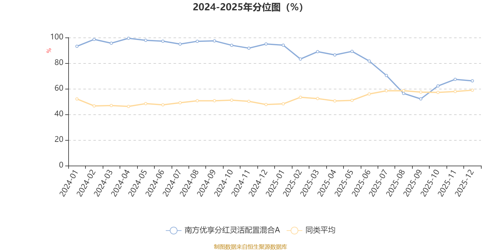 通过所选区间该基金净值增长率分位图,可以观察该基金与同类基金业绩比较情况。图为坐标原点到区间内某时点的净值增长率在同类基金中的分位数。