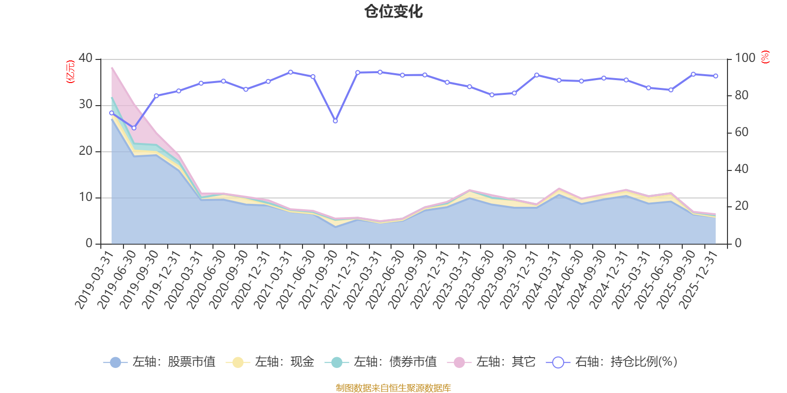 据定期报告数据统计,近三年平均股票仓位为86.95%,同类平均为72.57%。2021年一季度末基金达到92.87%的最高仓位,2019年上半年末最低,为62.68%。
