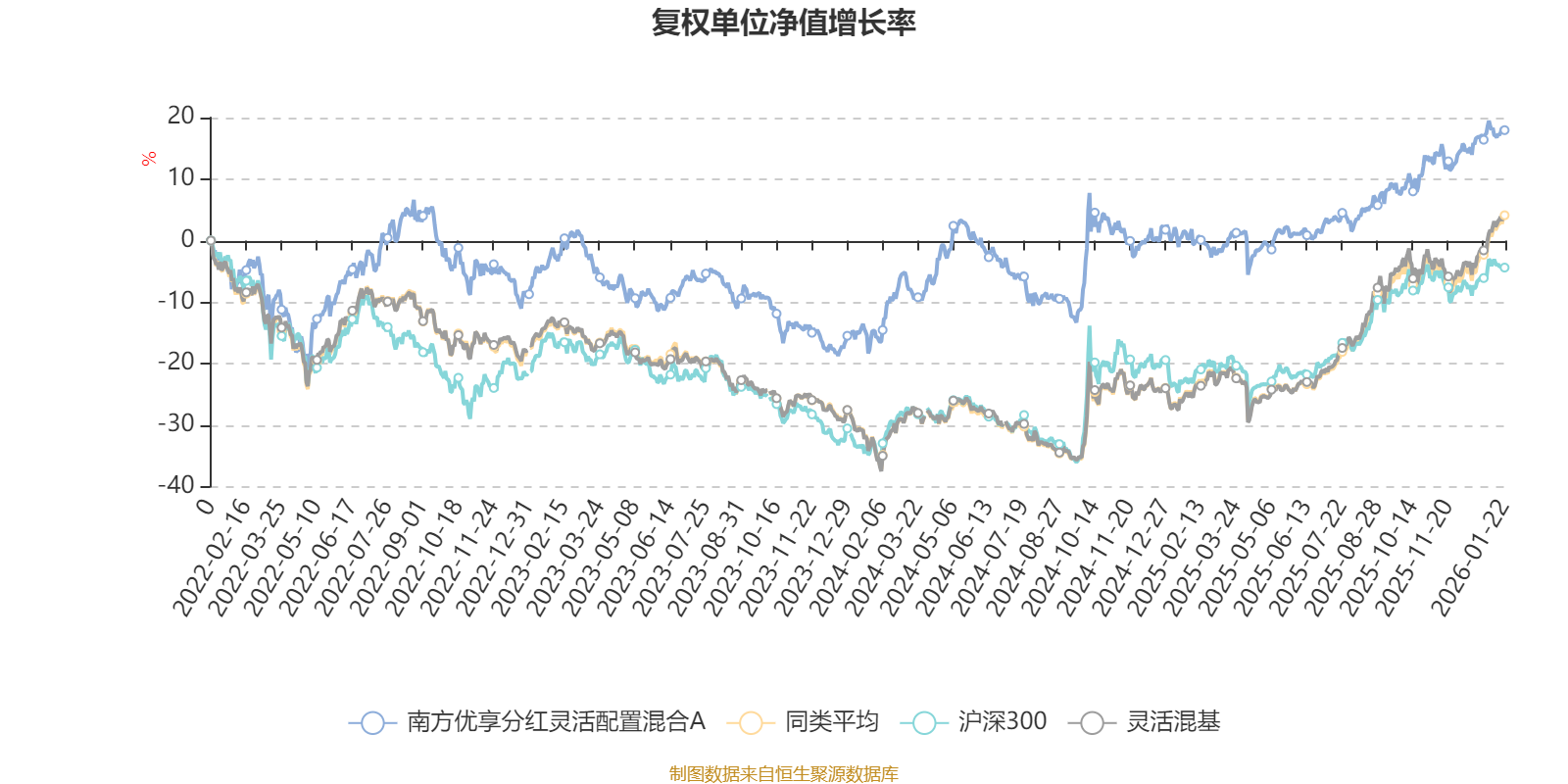 截至1月22日,南方优享分红灵活配置混合A近三个月复权单位净值增长率为6.84%,位于同类可比基金756/1286;近半年复权单位净值增长率为12.87%,位于同类可比基金864/1286;近一年复权单位净值增长率为17.71%,位于同类可比基金974/1286;近三年复权单位净值增长率为23.18%,位于同类可比基金492/1286。