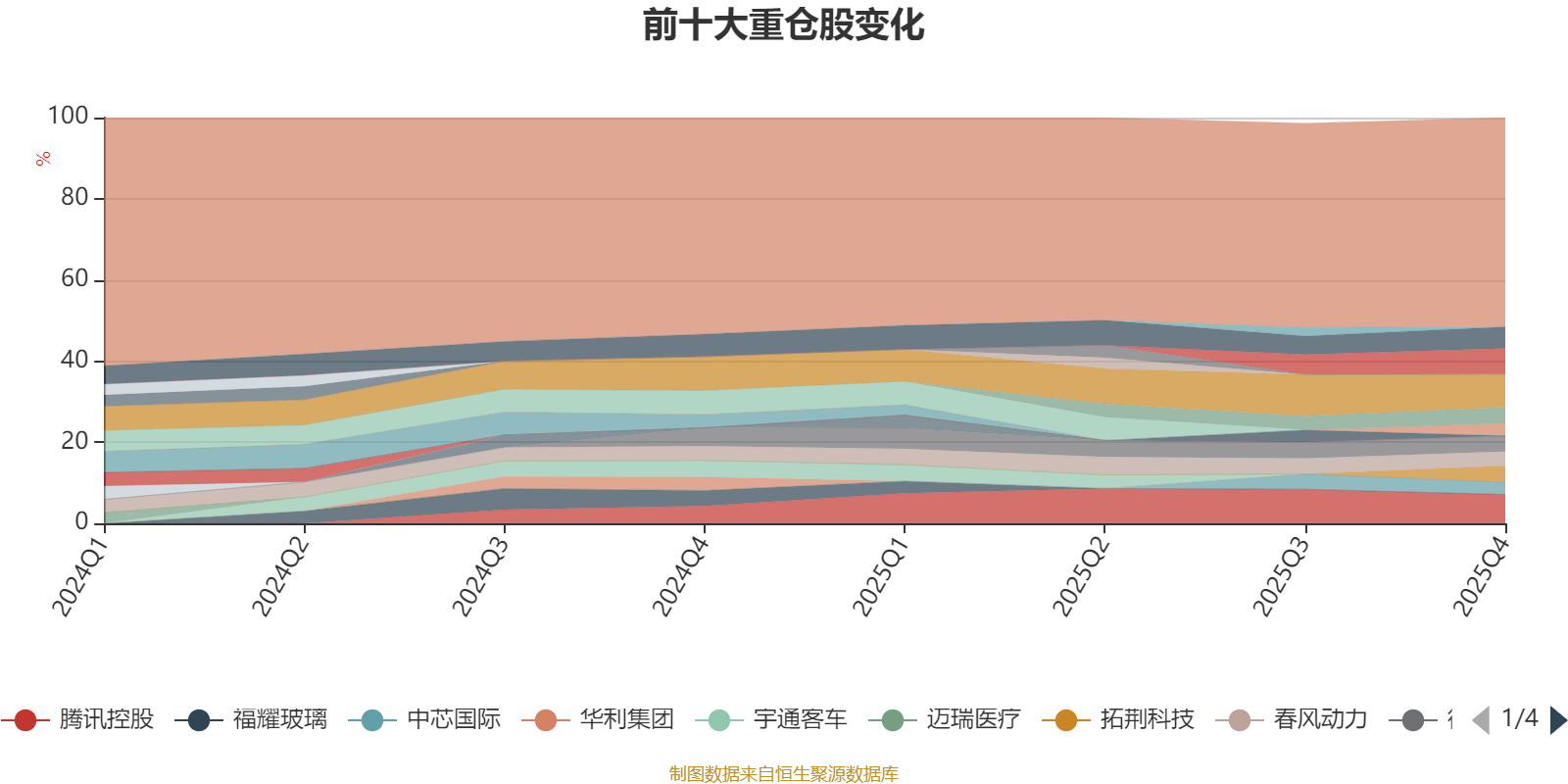 截至2025年四季度末,基金十大重仓股分别是宁德时代、腾讯控股、阳光电源、久立特材、拓荆科技、生益科技、徐工机械、春风动力、中际旭创、中芯国际。