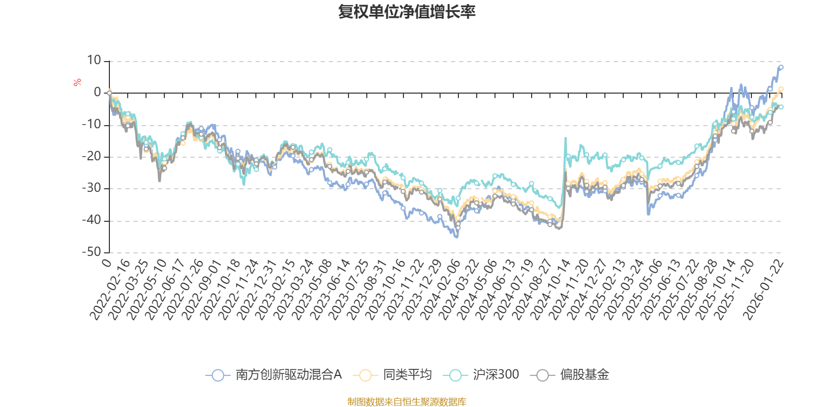 截至1月22日,南方创新驱动混合A近三个月复权单位净值增长率为12.87%,位于同类可比基金33/130;近半年复权单位净值增长率为45.74%,位于同类可比基金15/130;近一年复权单位净值增长率为54.09%,位于同类可比基金32/130;近三年复权单位净值增长率为33.77%,位于同类可比基金34/125。
