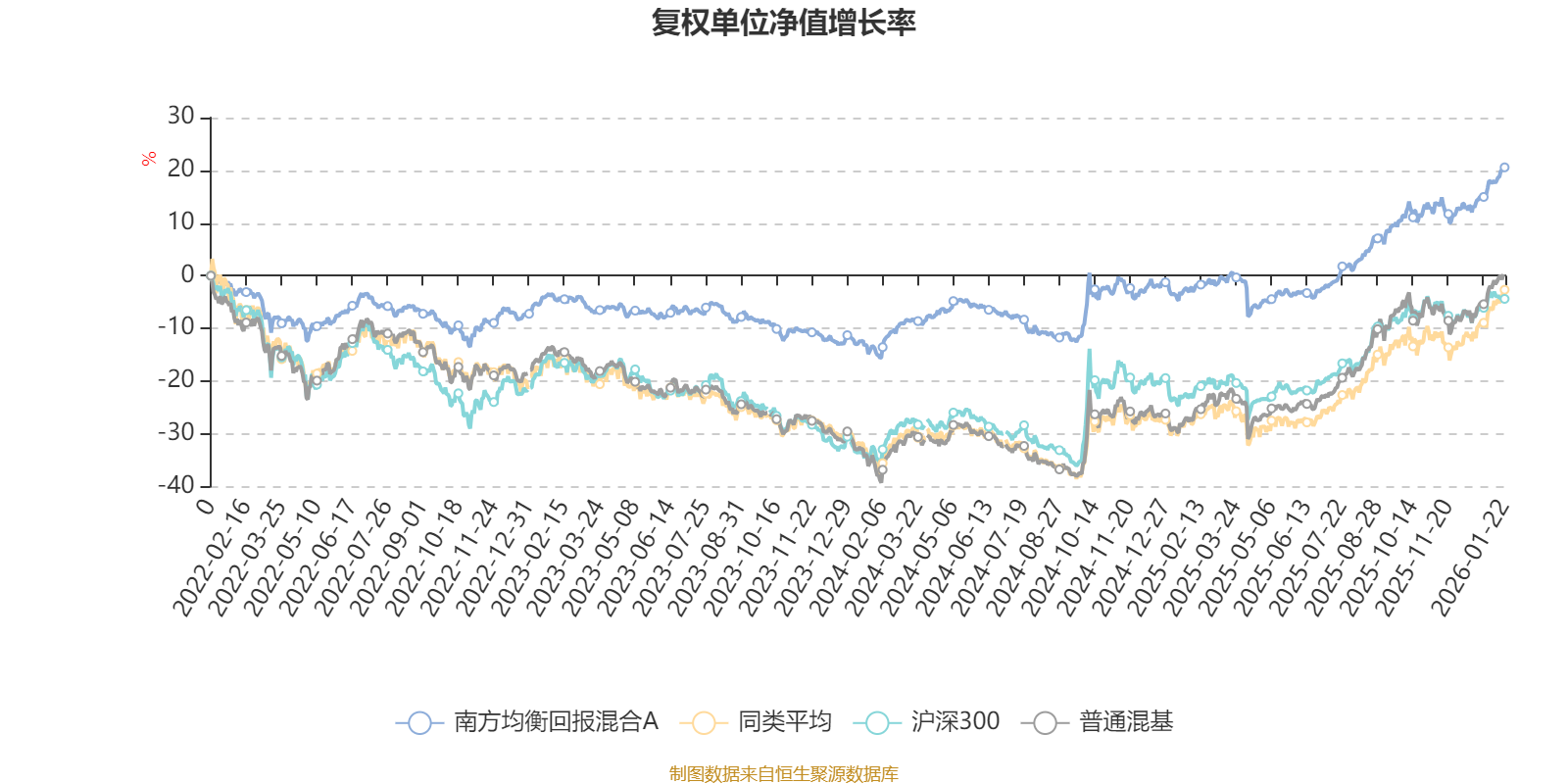 截至1月22日,南方均衡回报混合A近三个月复权单位净值增长率为8.40%,位于同类可比基金61/134;近半年复权单位净值增长率为18.46%,位于同类可比基金70/134;近一年复权单位净值增长率为24.06%,位于同类可比基金76/131;近三年复权单位净值增长率为25.16%,位于同类可比基金46/124。