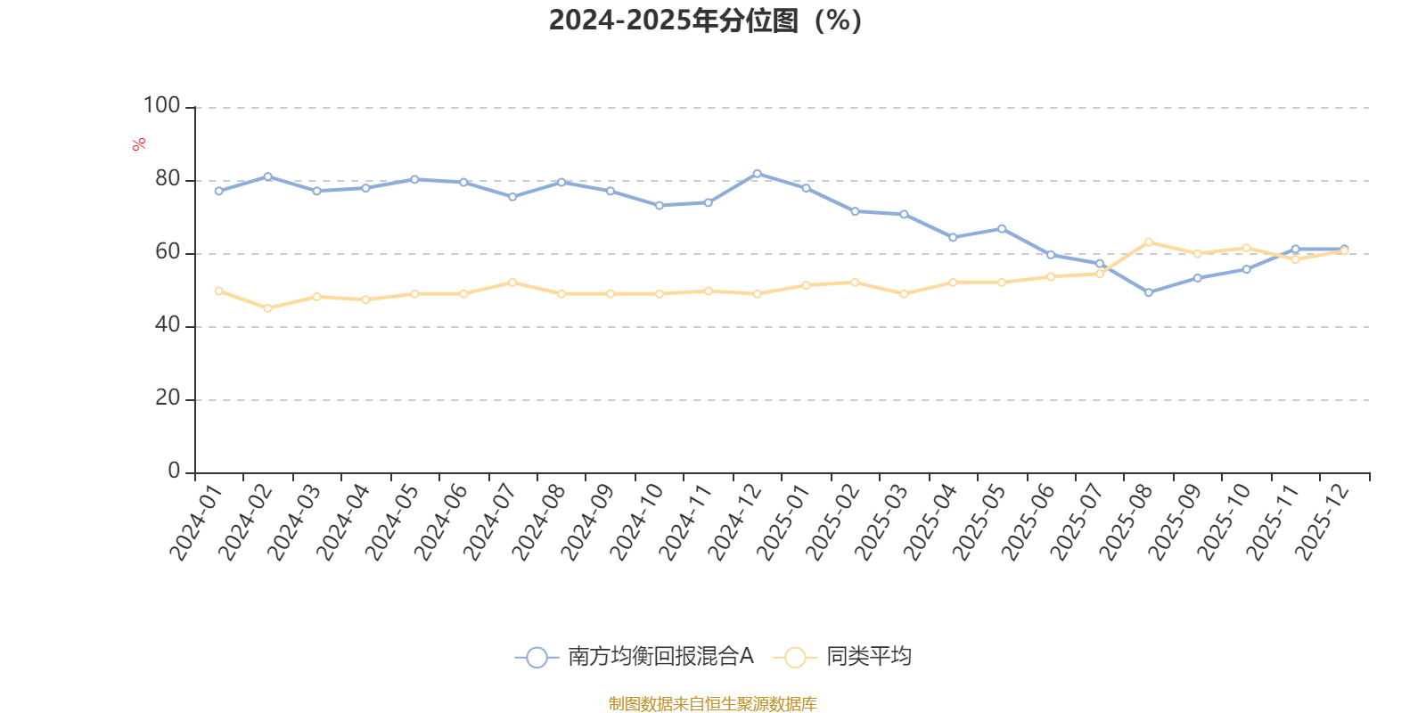 通过所选区间该基金净值增长率分位图,可以观察该基金与同类基金业绩比较情况。图为坐标原点到区间内某时点的净值增长率在同类基金中的分位数。