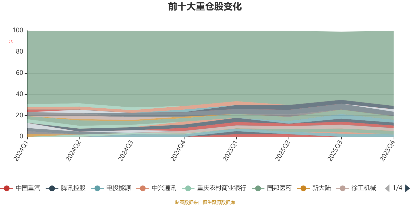 截至2025年四季度末,基金十大重仓股分别是宁德时代、美的集团、国邦医药、新奥能源、杰瑞股份、立讯精密、徐工机械、三环集团、电投能源、宝丰能源。