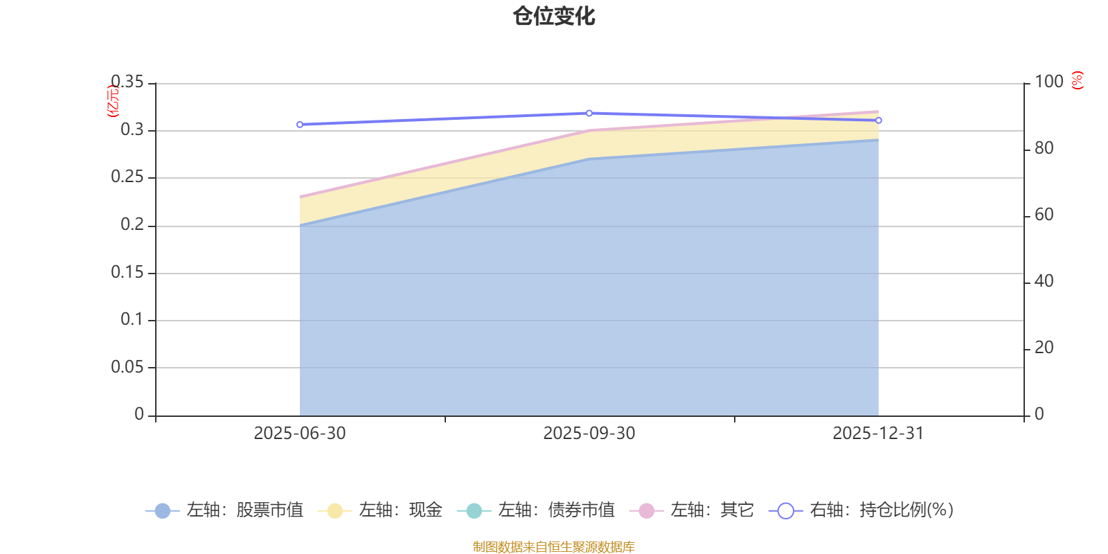 据定期报告数据统计,成立以来平均股票仓位为89.09%,同类平均为86.41%。2025年三季度末基金达到90.95%的最高仓位,2025年上半年末最低,为87.53%。