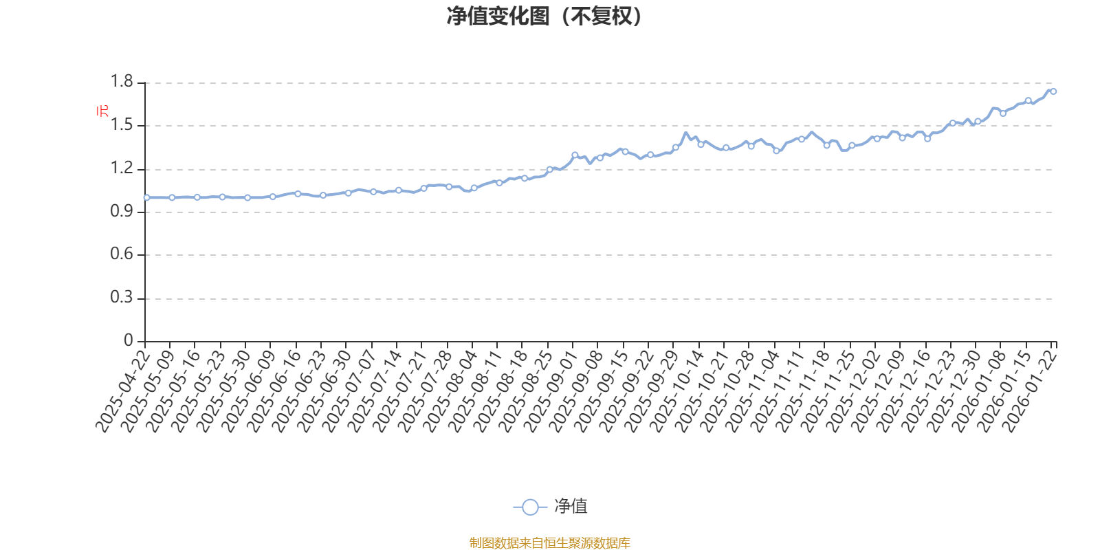 该基金属于偏股混合型基金,长期投资于周期股票。截至1月22日,单位净值为1.738元。基金经理是李浩玄和高翔。