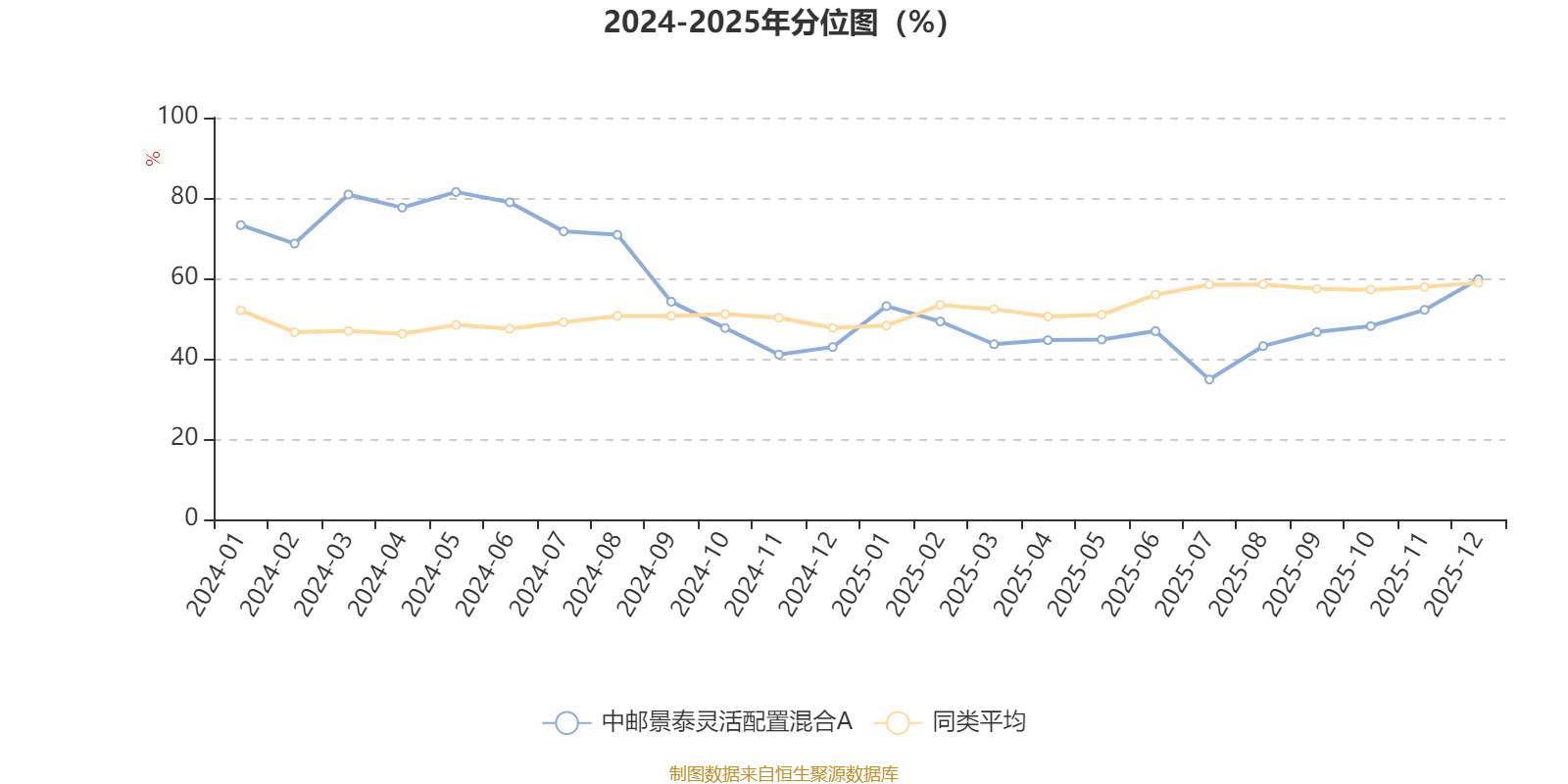 通过所选区间该基金净值增长率分位图,可以观察该基金与同类基金业绩比较情况。图为坐标原点到区间内某时点的净值增长率在同类基金中的分位数。