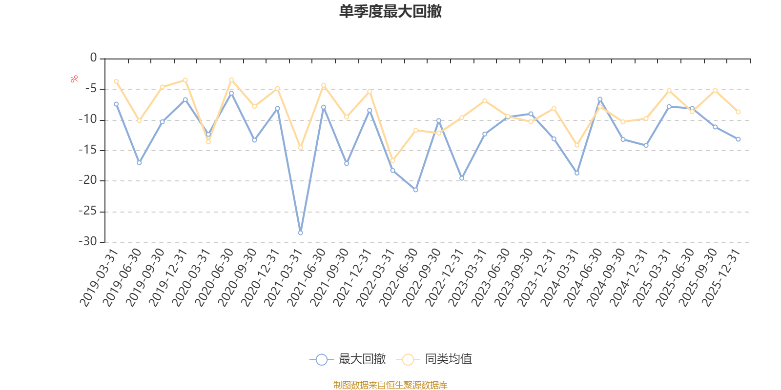 通过所选区间该基金净值增长率分位图,可以观察该基金与同类基金业绩比较情况。图为坐标原点到区间内某时点的净值增长率在同类基金中的分位数。