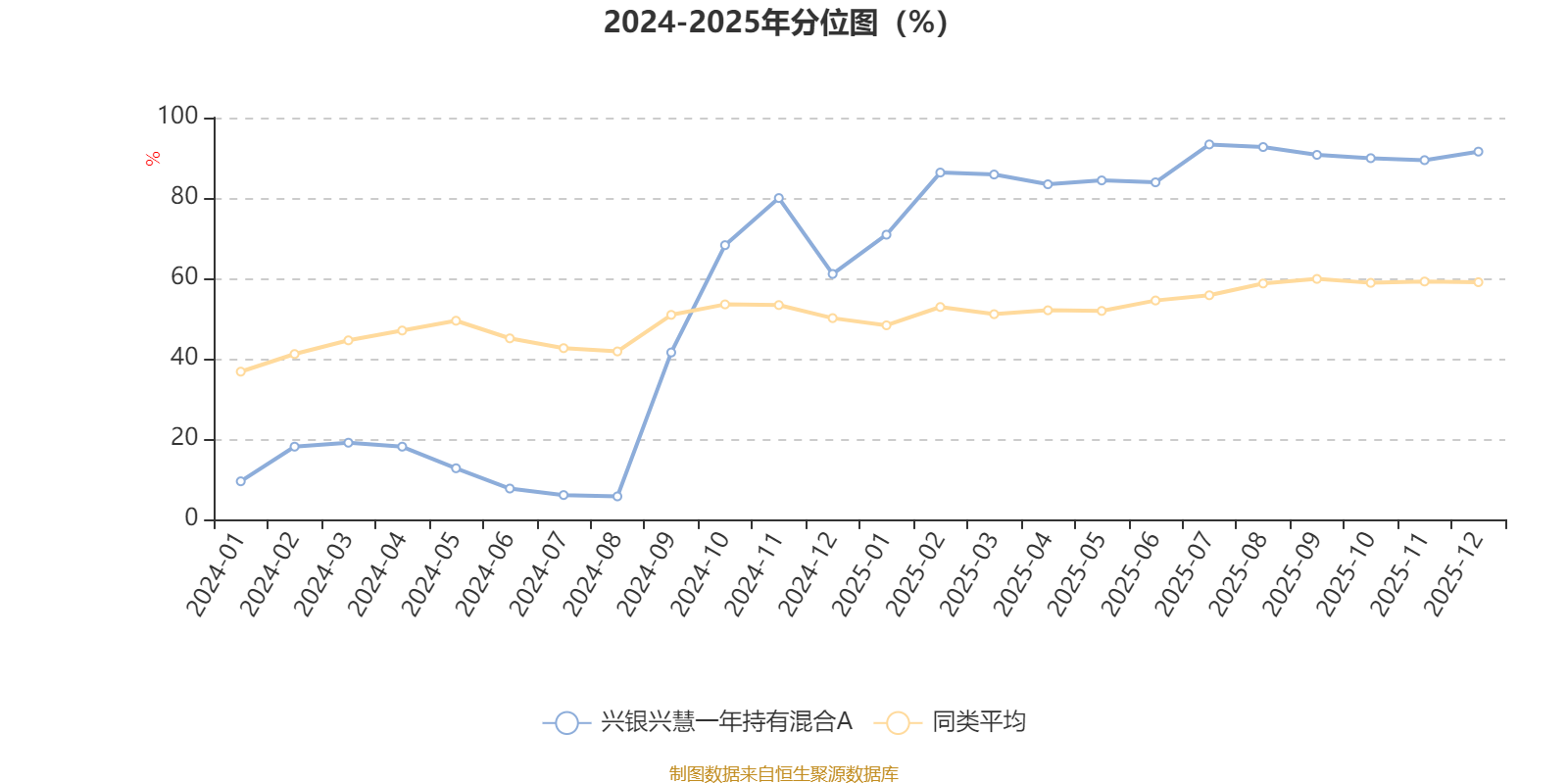 截至1月22日,兴银兴慧一年持有混合A近三个月复权单位净值增长率为5.77%,位于同类可比基金56/629;近半年复权单位净值增长率为9.33%,位于同类可比基金84/629;近一年复权单位净值增长率为17.43%,位于同类可比基金54/626;近三年复权单位净值增长率为22.03%,位于同类可比基金66/564。