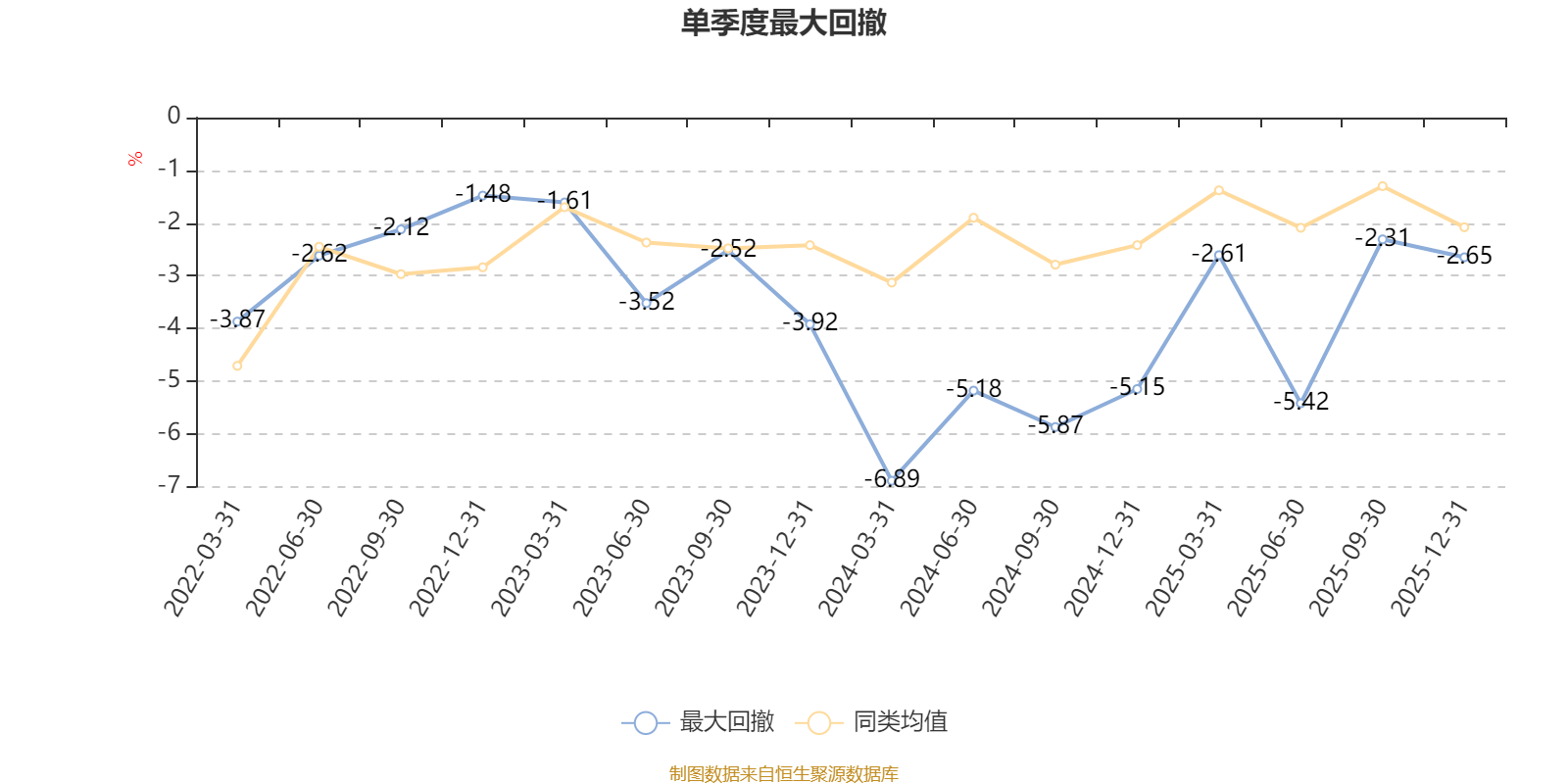 截至1月22日,基金近三年最大回撤为12.8%,同类可比基金排名457/527。单季度最大回撤出现在2024年一季度,为6.89%。