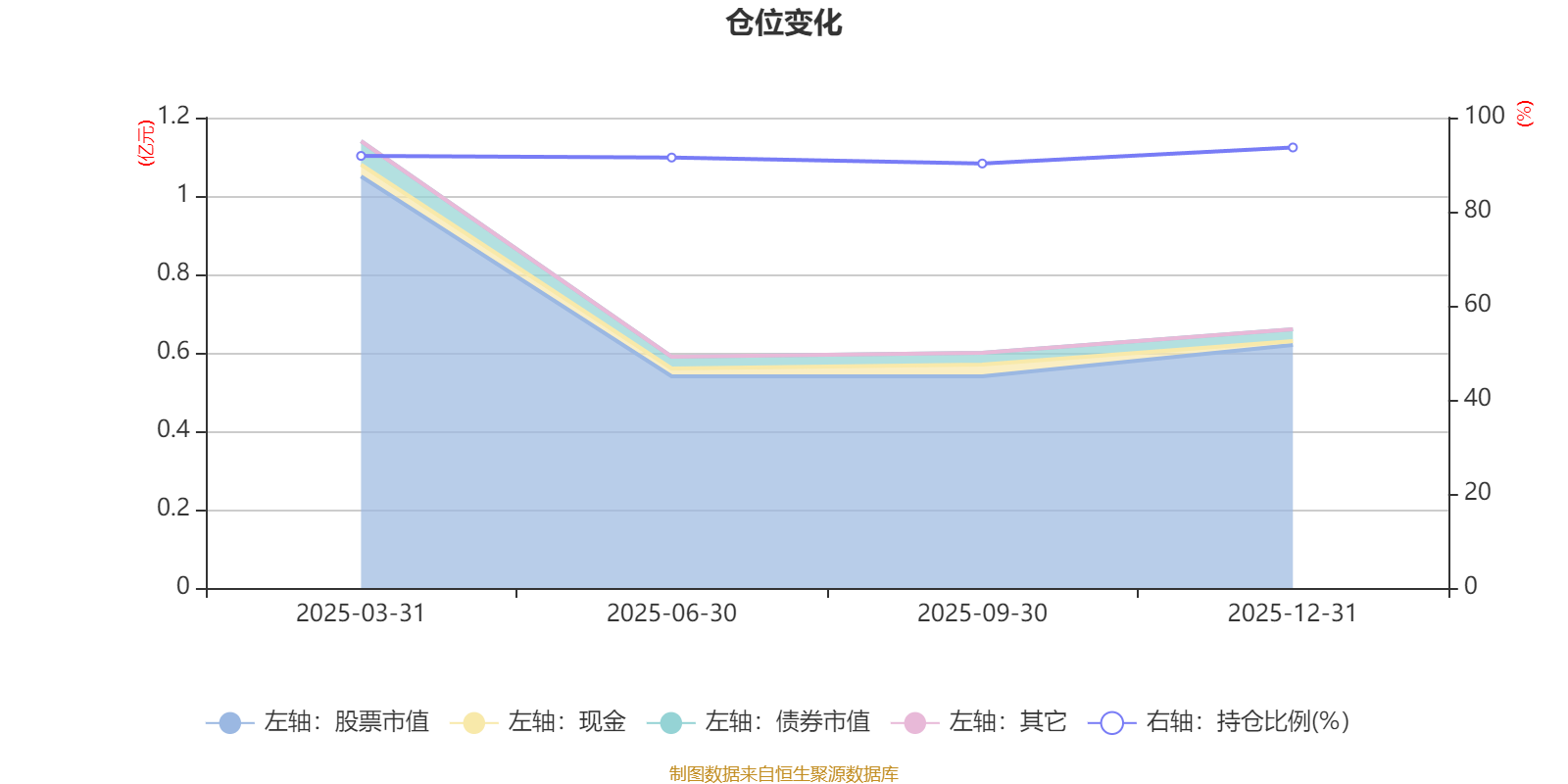 据定期报告数据统计,基金股票仓位长期保持较高水平,成立以来平均股票仓位为91.82%,同类平均为84.04%。2025年末基金达到93.65%的最高仓位,2025年三季度末最低,为90.24%。