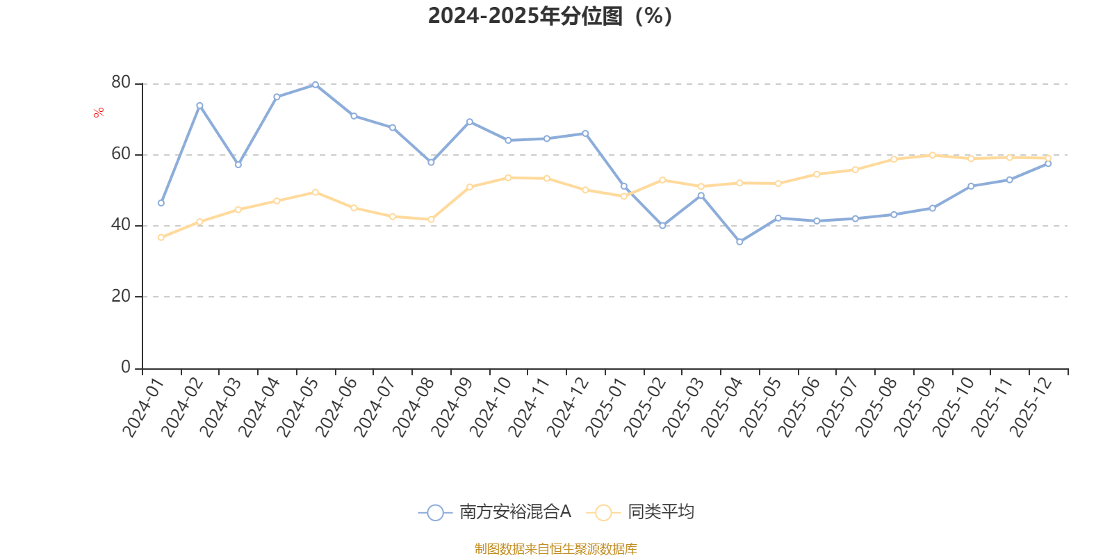通过所选区间该基金净值增长率分位图,可以观察该基金与同类基金业绩比较情况。图为坐标原点到区间内某时点的净值增长率在同类基金中的分位数。