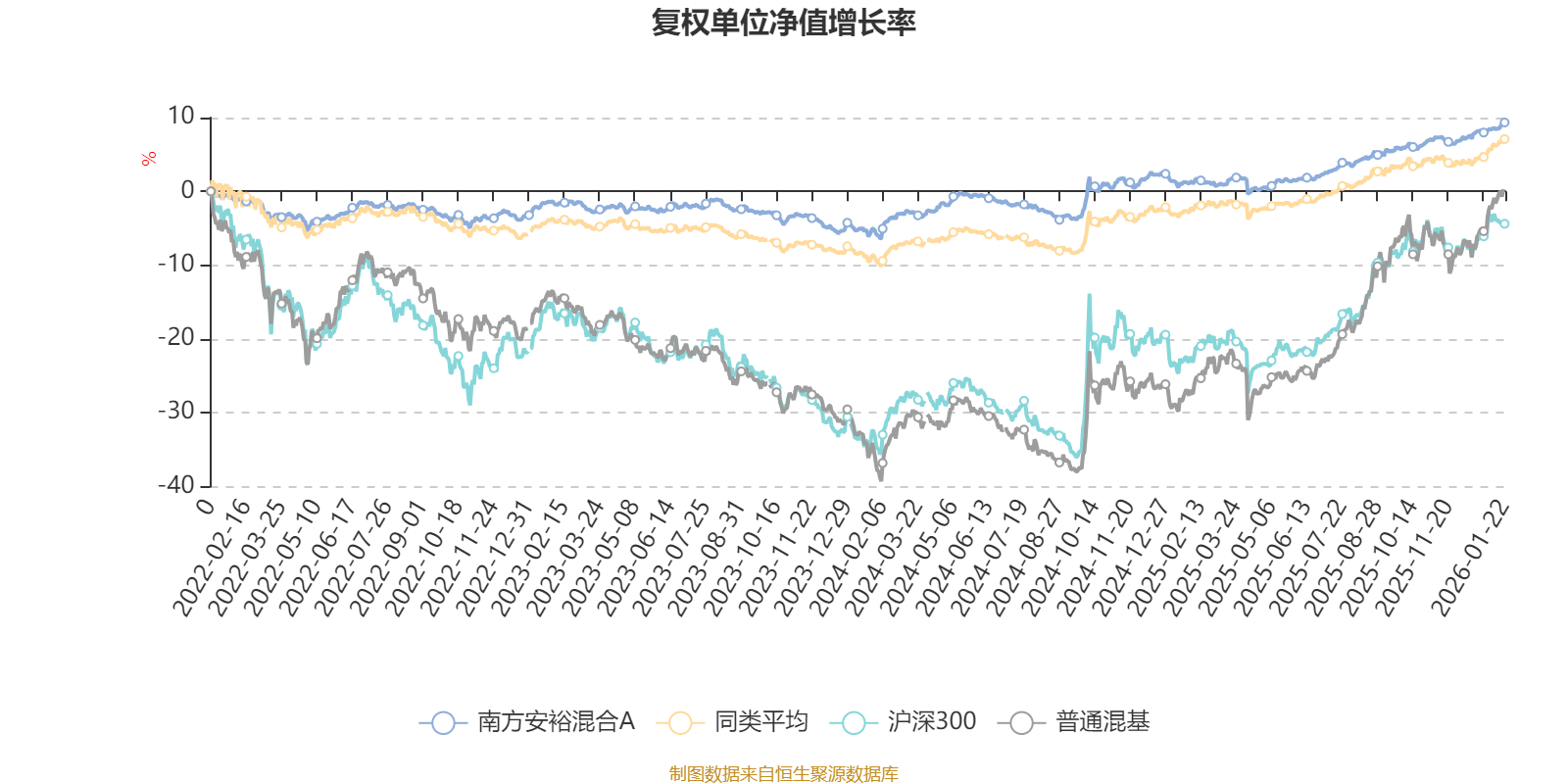 截至1月22日,南方安裕混合A近三个月复权单位净值增长率为3.03%,位于同类可比基金197/629;近半年复权单位净值增长率为5.24%,位于同类可比基金251/629;近一年复权单位净值增长率为8.13%,位于同类可比基金295/626;近三年复权单位净值增长率为10.96%,位于同类可比基金312/564。