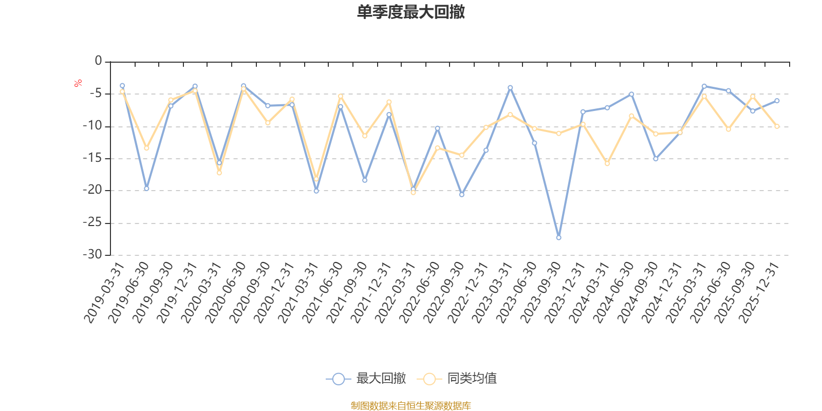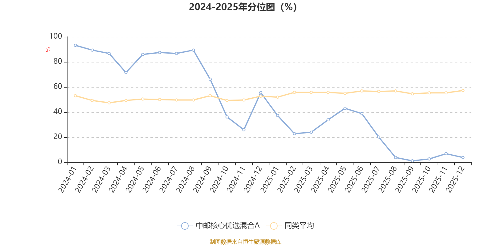 通过所选区间该基金净值增长率分位图,可以观察该基金与同类基金业绩比较情况。图为坐标原点到区间内某时点的净值增长率在同类基金中的分位数。