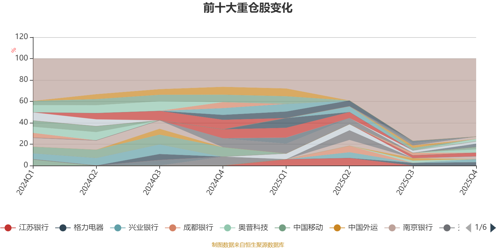 截至2025年四季度末,基金十大重仓股分别是中国平安、招商银行、格力电器、伊利股份、兴业银行、南京银行、中国海油、雅戈尔、中国神华、华域汽车。