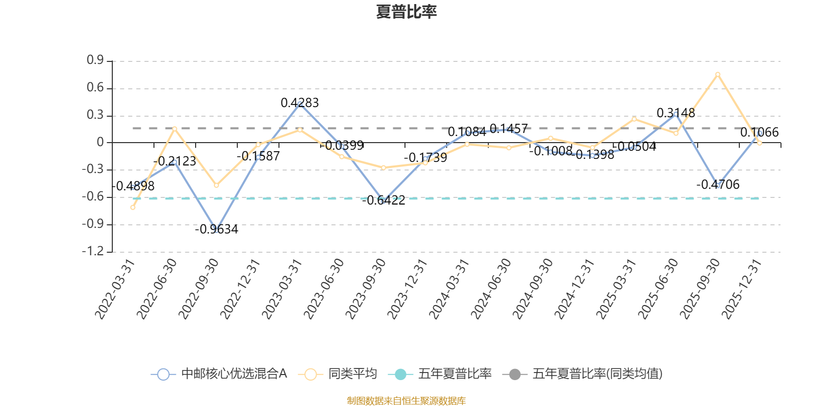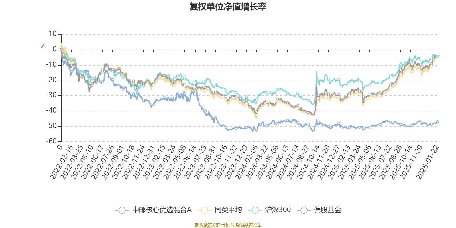 截至1月22日,中邮核心优选混合A近三个月复权单位净值增长率为3.49%,位于同类可比基金217/265;近半年复权单位净值增长率为0.73%,位于同类可比基金263/265;近一年复权单位净值增长率为8.02%,位于同类可比基金264/265;近三年复权单位净值增长率为-20.19%,位于同类可比基金249/256。