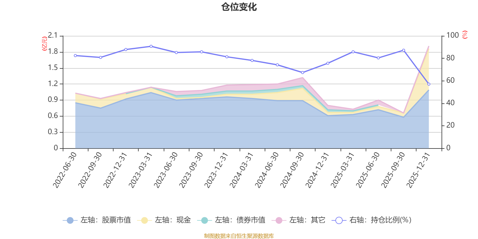 据定期报告数据统计,近三年平均股票仓位为79.08%,同类平均为84.04%。2023年一季度末基金达到90.71%的最高仓位,2025年末最低,为57.08%。