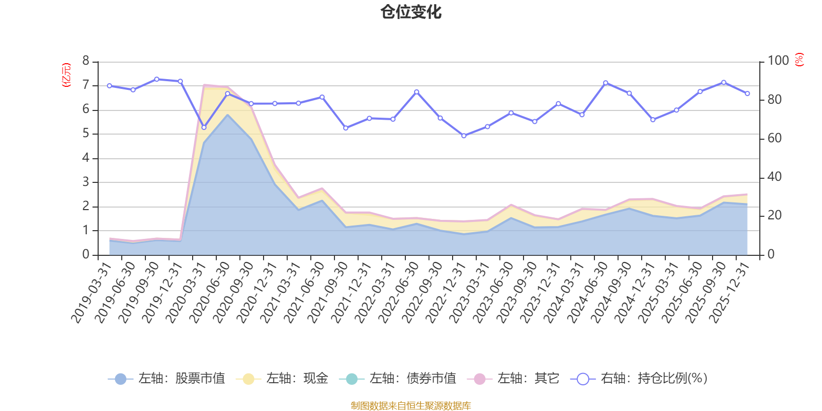 据定期报告数据统计,近三年平均股票仓位为77.91%,同类平均为86.9%。2019年三季度末基金达到90.92%的最高仓位,2022年末最低,为61.69%。