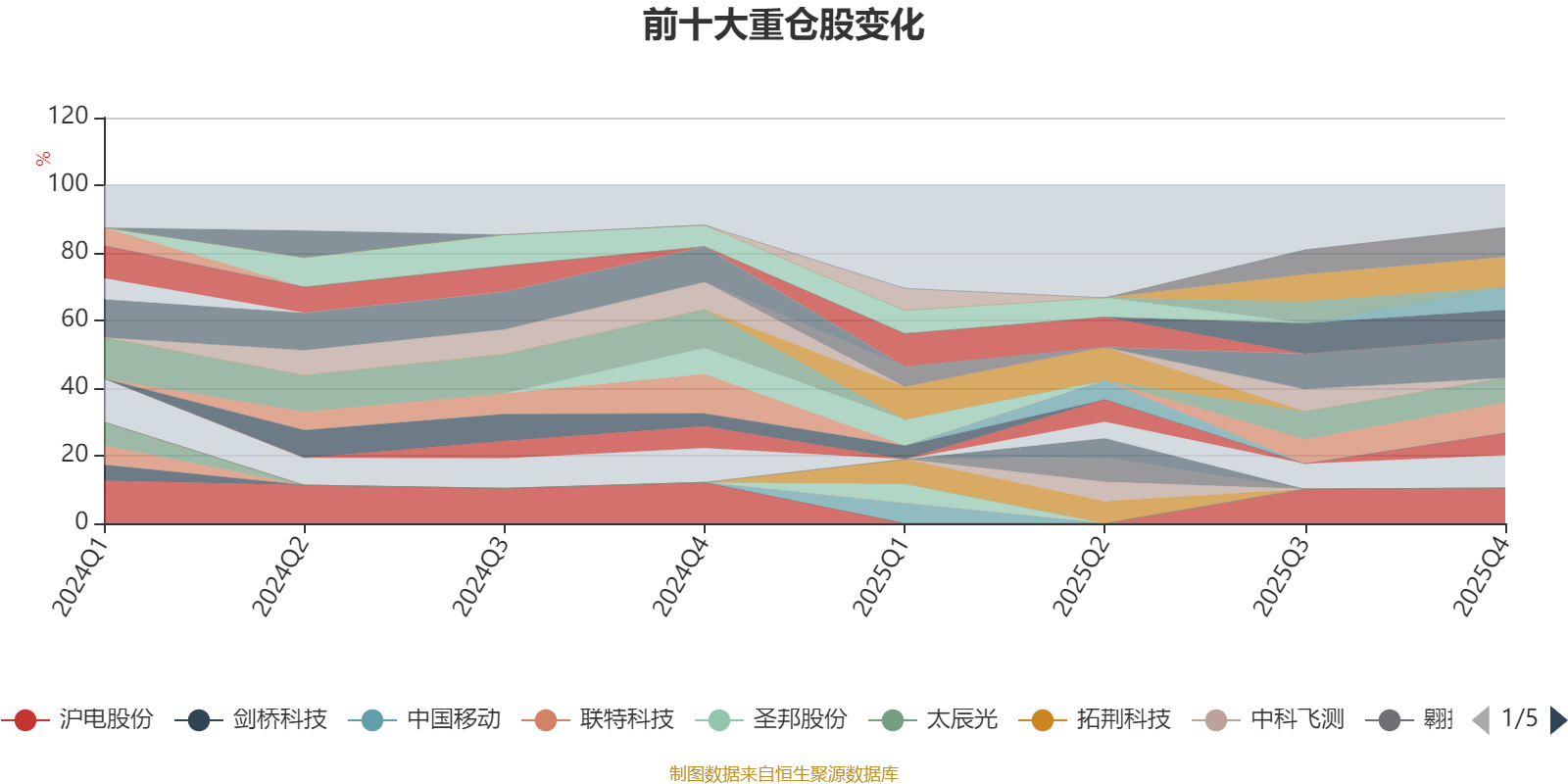 该基金持股集中度较高,近2年前十大重仓股集中度长期超过60%。截至2025年四季度末,基金十大重仓股分别是中际旭创、沪电股份、天孚通信、生益电子、深南电路、景旺电子、鹏鼎控股、新易盛、生益科技、胜宏科技。