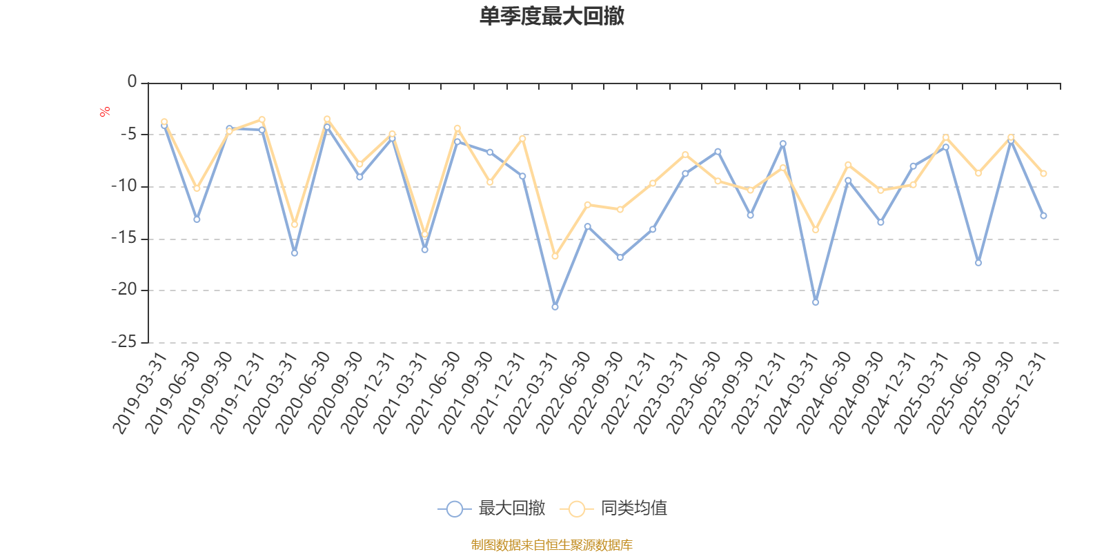 通过所选区间该基金净值增长率分位图,可以观察该基金与同类基金业绩比较情况。图为坐标原点到区间内某时点的净值增长率在同类基金中的分位数。